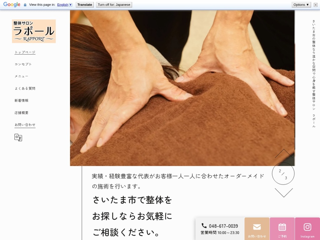 整体サロンラポール ソフト整体 痛みの少ない優しい矯正で全身のバランスを整える